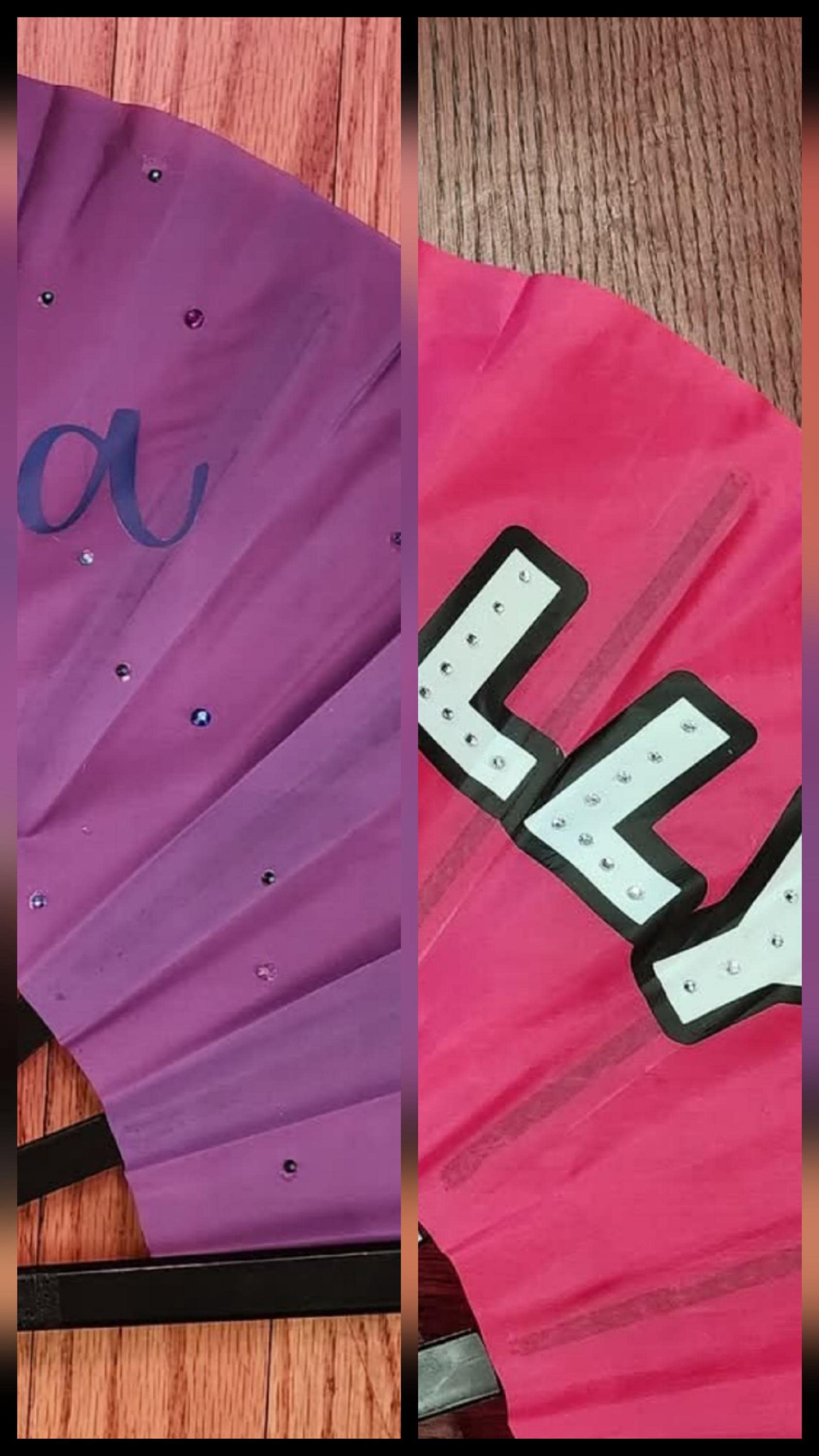 Rhinestone additional cost breakdown - all rhinestones will match with the font color/fan color, special colors upon request. If you would like this added on to your fan please reach out to make a CUSTOM order. Please do not place an order asking for rhinestone in personalization, the order will be cancelled or I will reach out for any additional costs for the order.