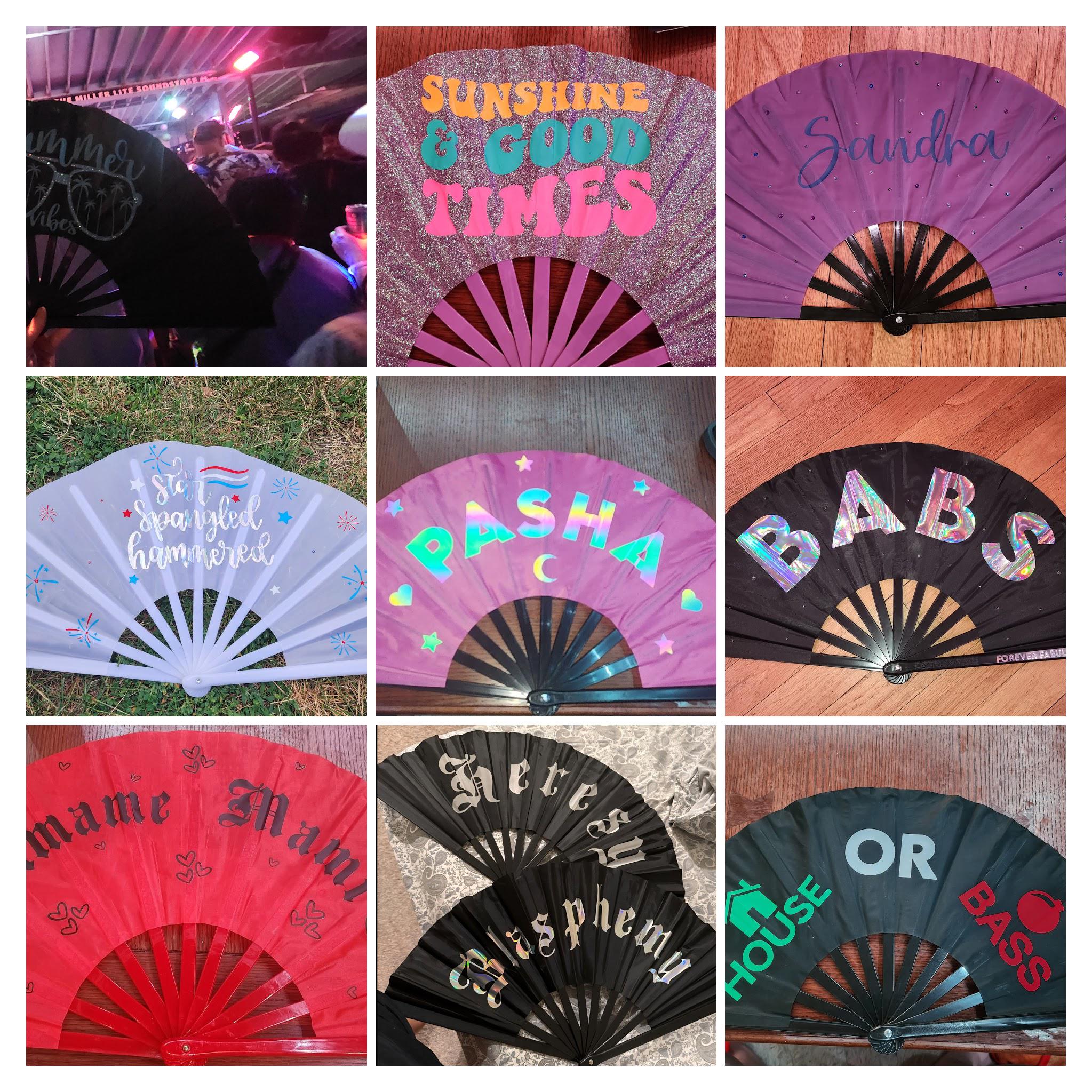 This custom rave fan is the perfect accessory for music festivals, bachelorette parties, or EDM lovers who want to make a bold statement. Personalize it with your name, phrase, or logo!