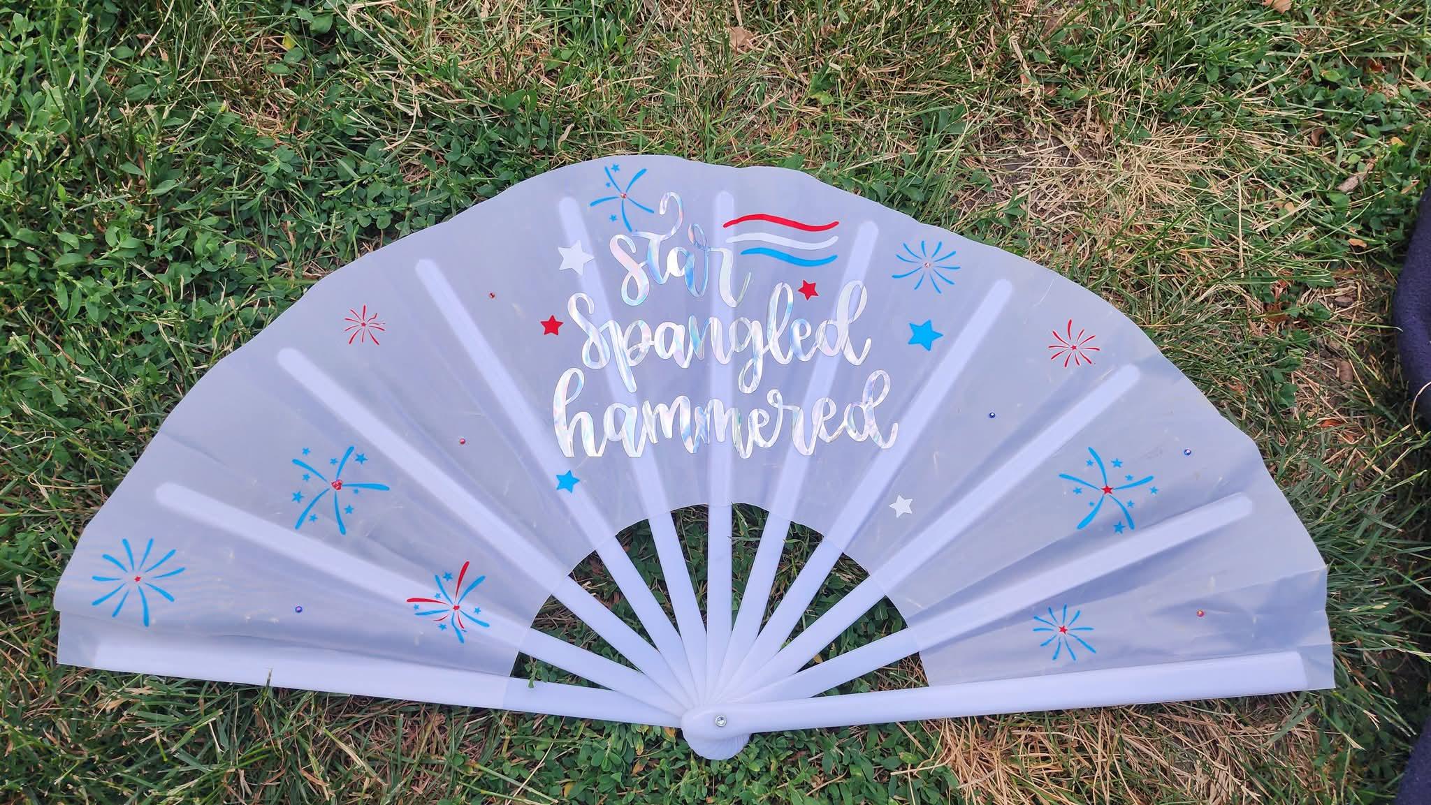 If you would like additional details added please message me! I can add some details, rhinestons or word outlines and more for an additional charge! I would need to make a CUSTOM order listing for you for additional details for your fan!