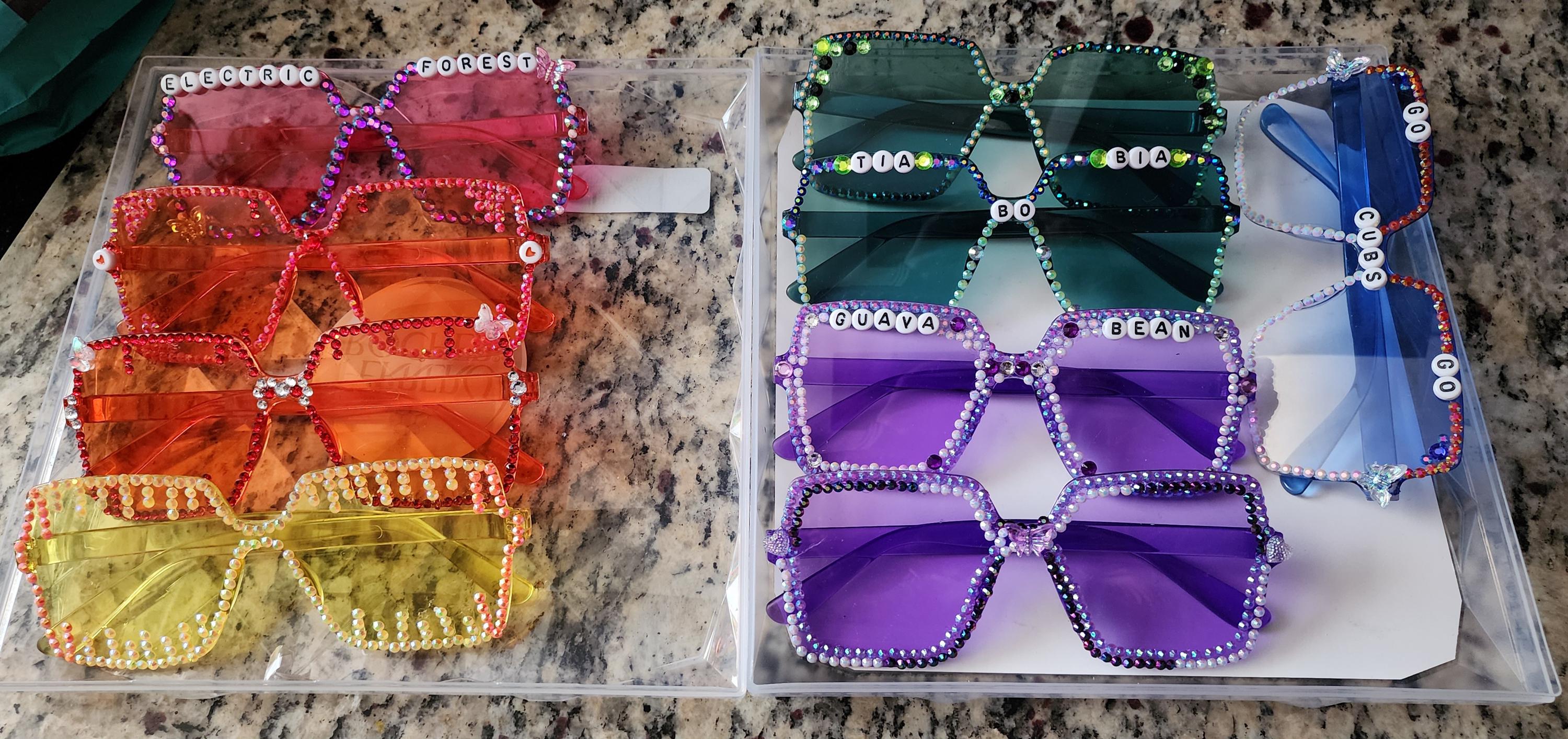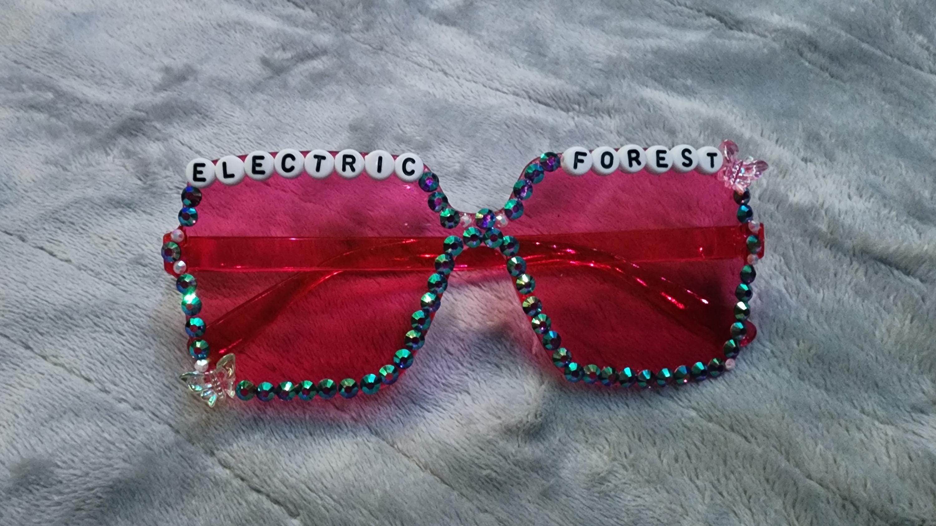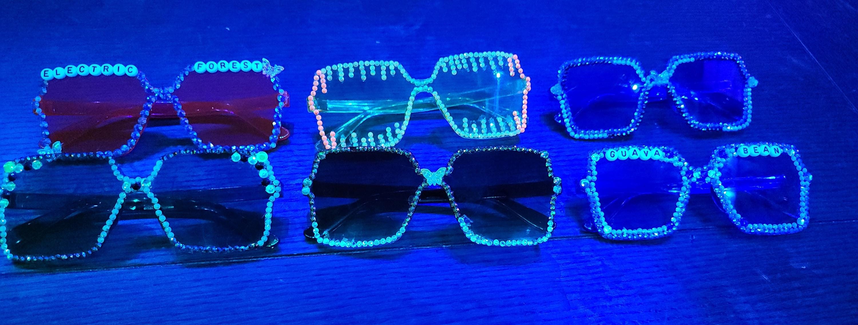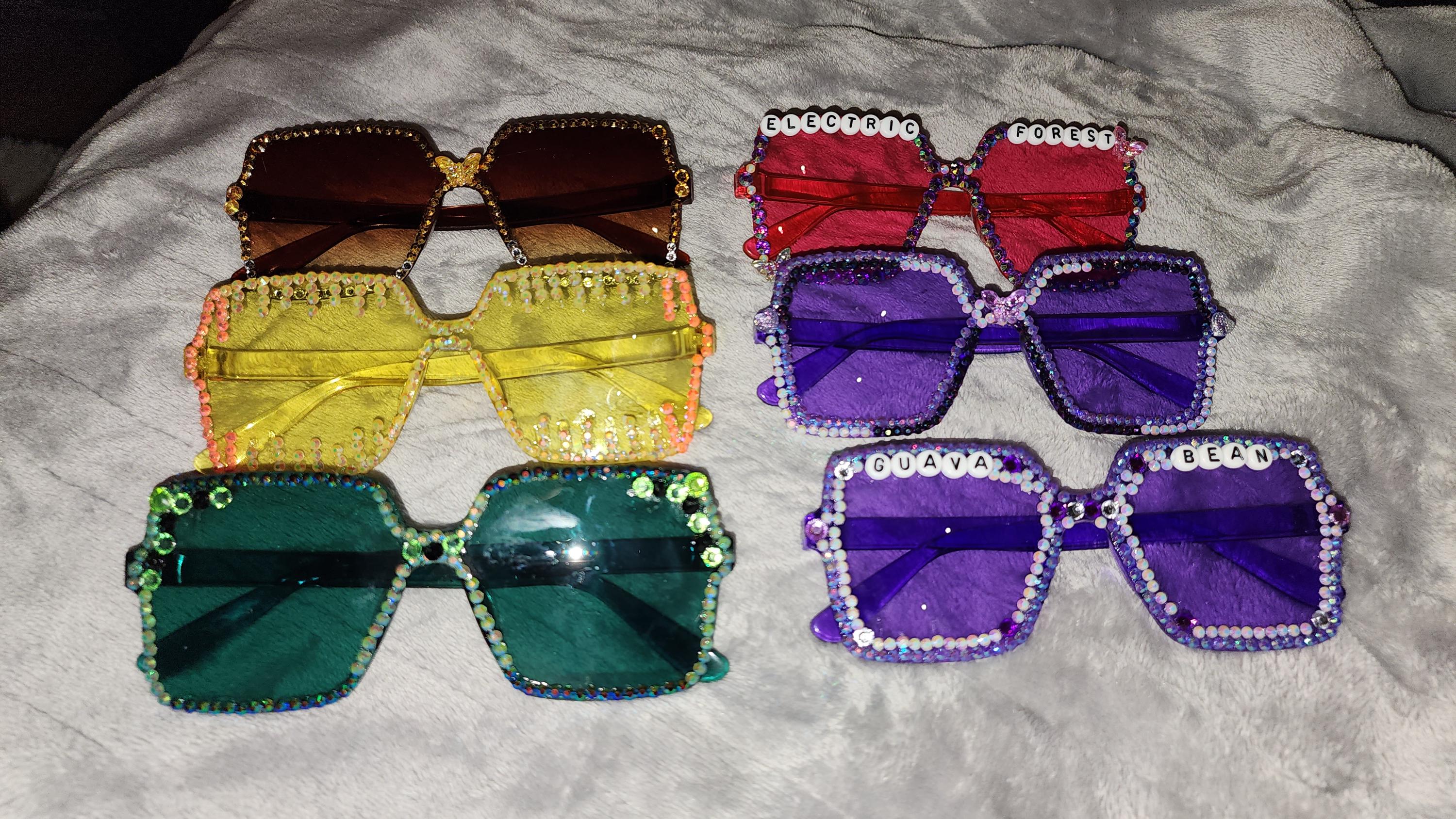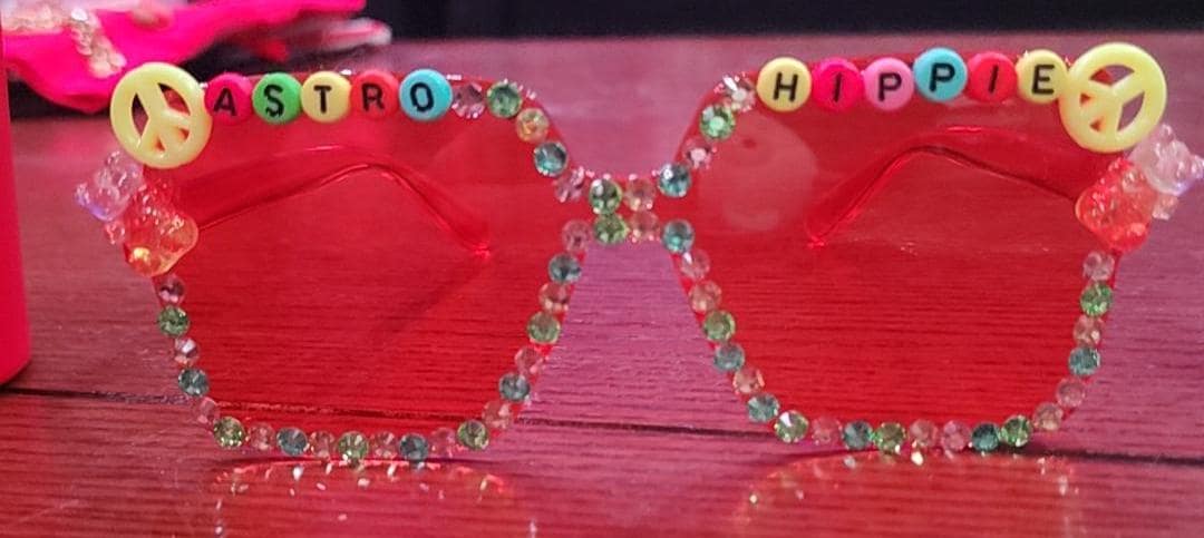 These can be personalized to your liking! I have hearts, cateye hearts, stars and squares for the sunglasses shape! So many colors to choose from! Perfect for a gift for friends and family for any event!! This is the perfect accessory to compliment any outfit!! You can choose words or lyrics to add to these! Great for concerts, parties, birthdays, bachelorette parties, weddings or just something fun for your next festival! These are fully customizable that come in soo many different colors! Some rhinestone colors glow under Black light! *updating photos soon!*