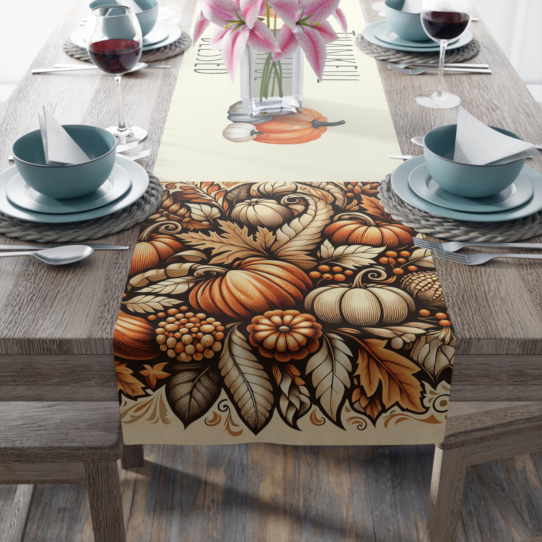 Elevate your dining experience with our stunning Table Runner, designed to bring warmth and charm to any gathering. This beautiful décor piece encapsulates the essence of fall, featuring rich colors and intricate patterns that celebrate the season. Perfect for family dinners, Thanksgiving celebrations, or cozy autumn brunches, it sets a delightful atmosphere for your special occasions. Ideal for anyone who loves hosting or wants to add a touch of seasonal elegance to their home, this Table Runner is a must-have for those who appreciate the beauty of handcrafted design and rich textures. Whether you're creating a festive table setup or simply enhancing your daily dining, this table runner is your go-to choice for comfort and style.