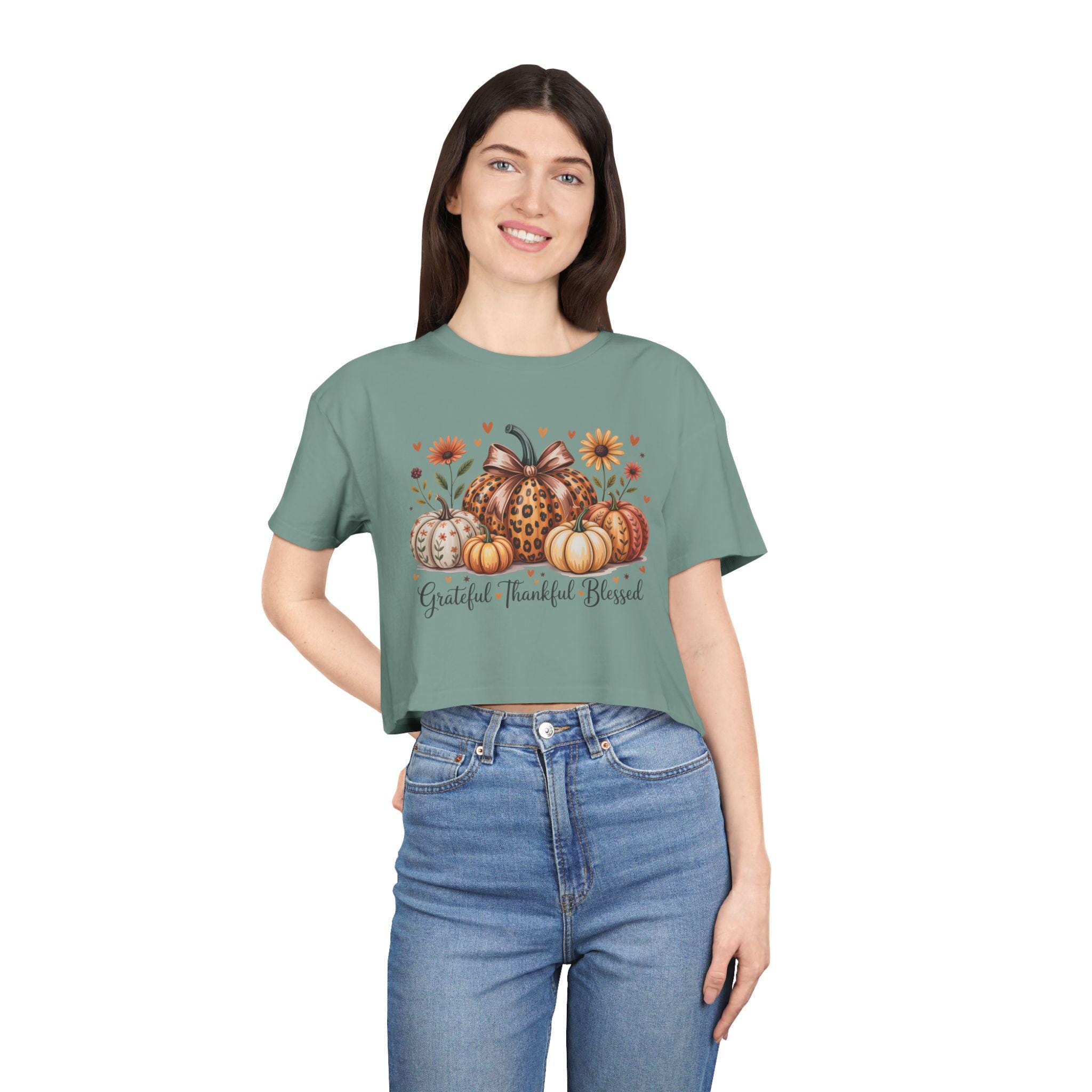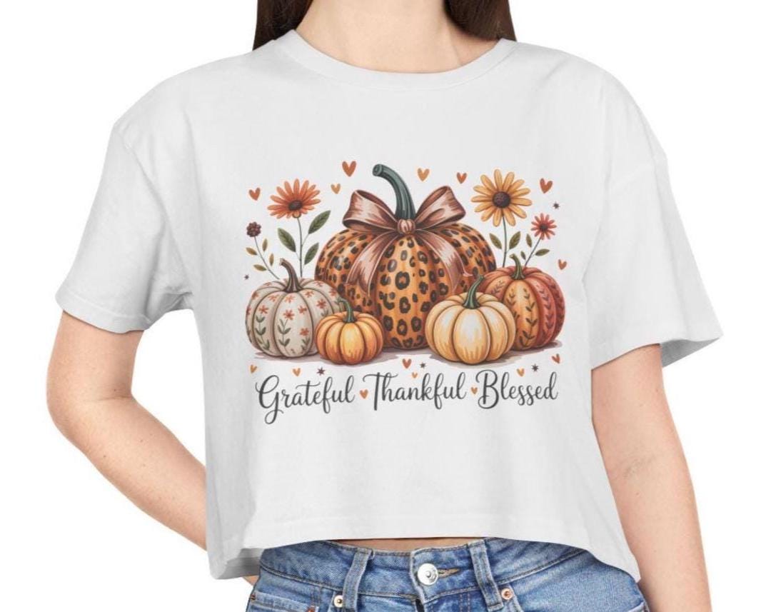 Introducing our Women's Crop Tee, a perfect blend of comfort and style for your casual wardrobe. With its relaxed fit and cute pumpkin design, this shirt exudes a warm, cozy vibe, making it ideal for autumn gatherings and festive seasons. Whether you’re celebrating Thanksgiving with family or enjoying a casual day out with friends, this crop tee is a versatile choice that fits seamlessly into your life. It's especially great for women who appreciate trendy looks that emphasize comfort without sacrificing style. Perfect for holidays, cozy get-togethers, or simply lounging at home, this tee will add a touch of seasonal charm to your attire.