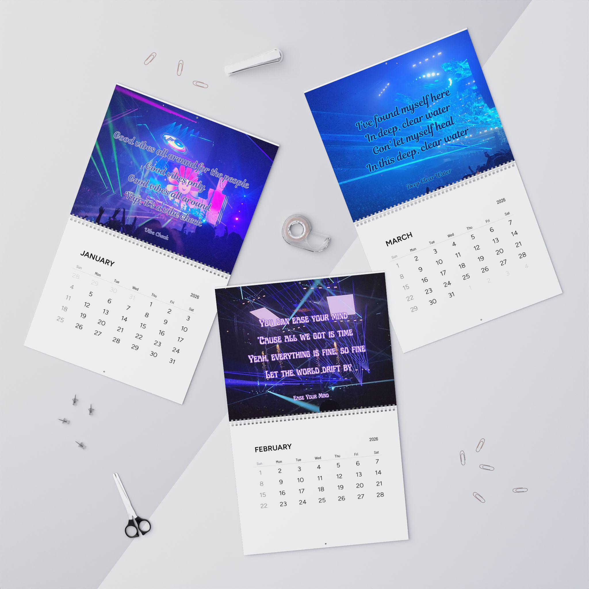 Do you love GRiZ as much as I do?! Here is a collection of some of the recent photos from his RETURN! We so back baby!! Each month has a new photo and lyrics to fall in love with again and again. Have you heard the opening of his CTGH set from Seven Stars? Well now you can read each of the things he has learned during his break in the coming months to have them stick with you always! Bursting with colors and positive vibes, this calendar is designed to inspire creativity and organization in your daily life. Whether you're at home or in the office, its stylish design adds a cheerful touch to any environment. Perfect for students, professionals, and anyone who appreciates artful decor, it makes an excellent gift for holidays like New Year’s, birthdays, or just to brighten someone’s day. Celebrate every month with joy and intention! Don't forget to Show Love Spread Love!